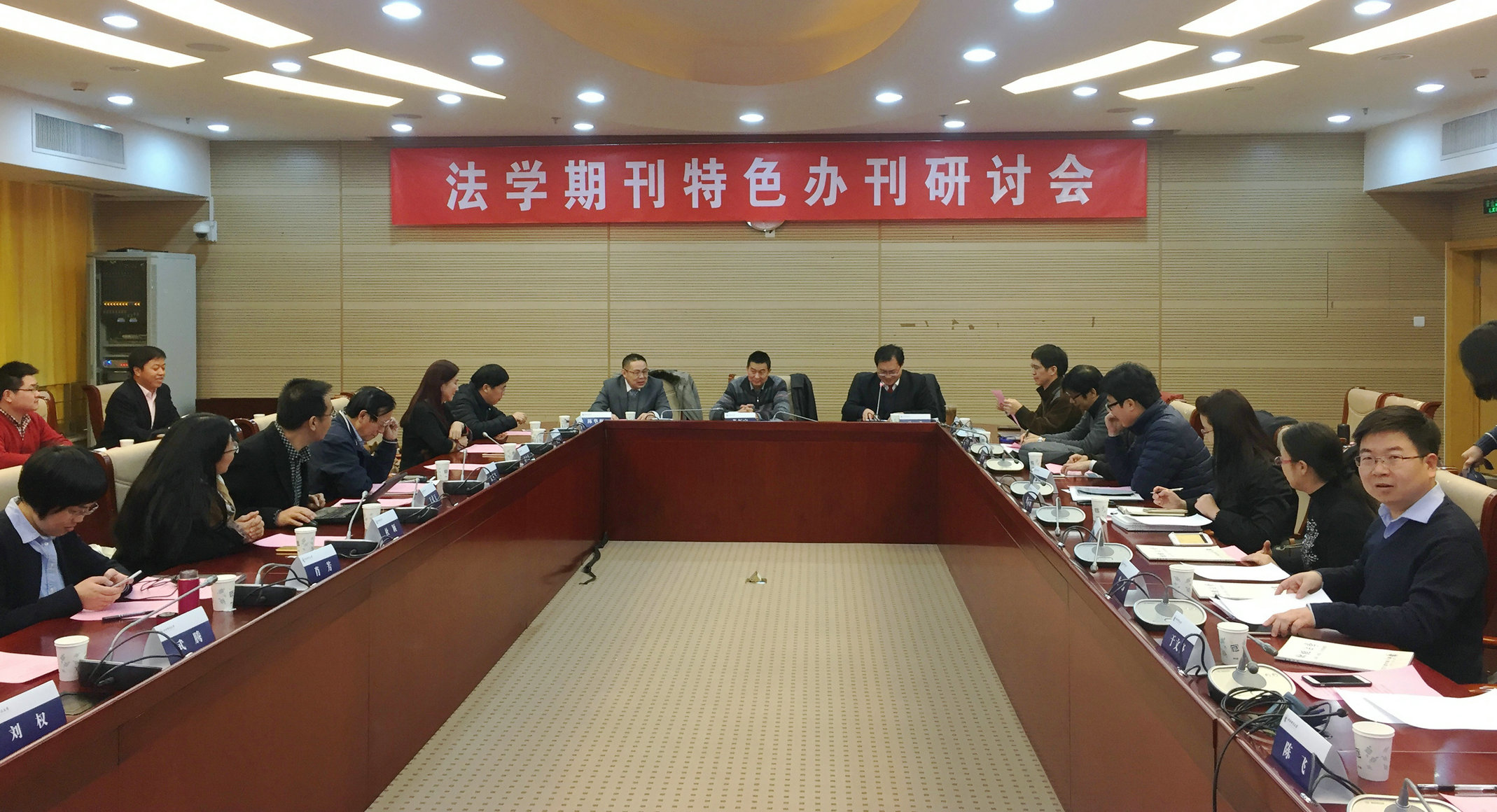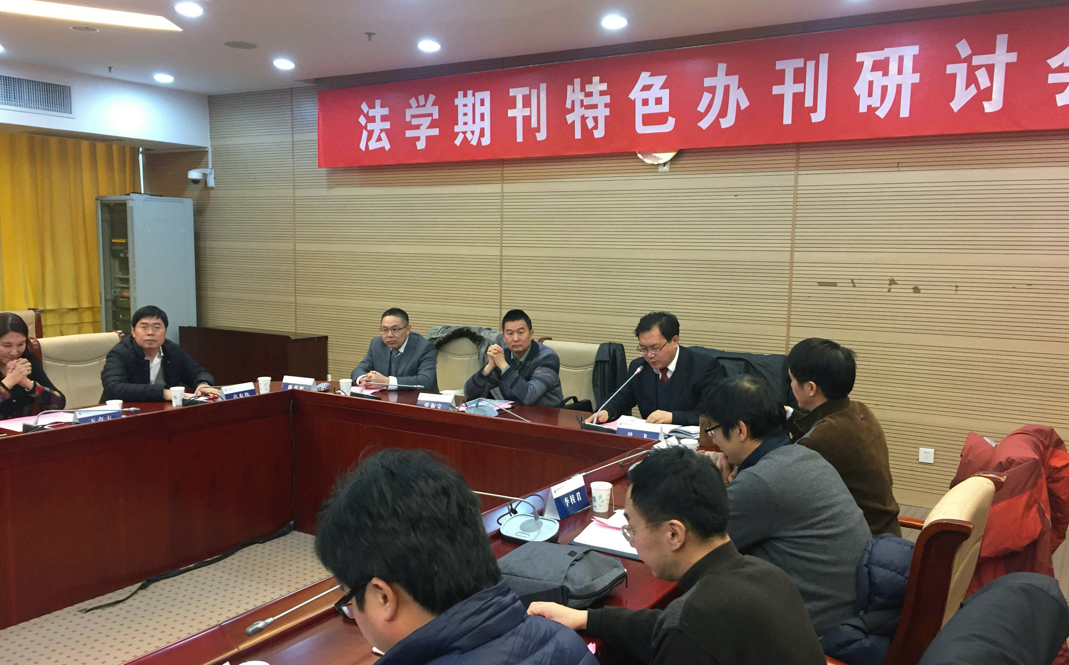 2017年1日16日下午,為交流法學期刊特色辦刊經(jīng)驗,中央財經(jīng)大學《財經(jīng)法學》編輯部在中央財經(jīng)大學學院南路校區(qū)學術(shù)會堂604室召集召開了“法學期刊特色辦刊研討會”。中國法學期刊研究會會長、《中國法學》總編輯、中國人民大學張新寶教授,中國法學期刊研究會副會長、《中外法學》主編、北京大學梁根林教授,中國法學期刊研究會常務(wù)理事、《法學研究》編輯部副主任馮玨研究員,《新華文摘》王青林編審,《清華法學》編輯部徐雨衡主任,中央財經(jīng)大學科研處處長李桂君教授,中央財經(jīng)大學學術(shù)期刊社社長王克方,中央財經(jīng)大學法學院院長尹飛教授,《財經(jīng)法學》雜志社全體編輯以及法學院教師二十余人出席了本次會議。