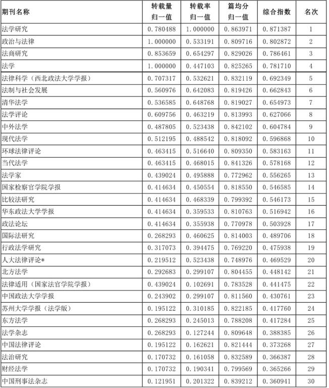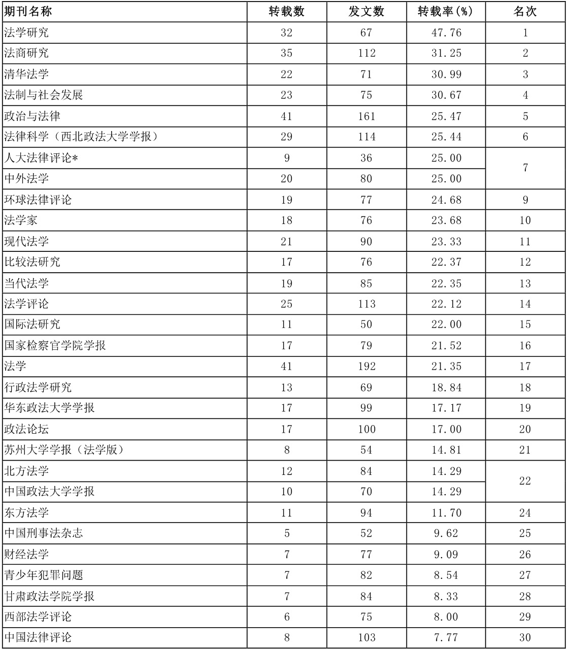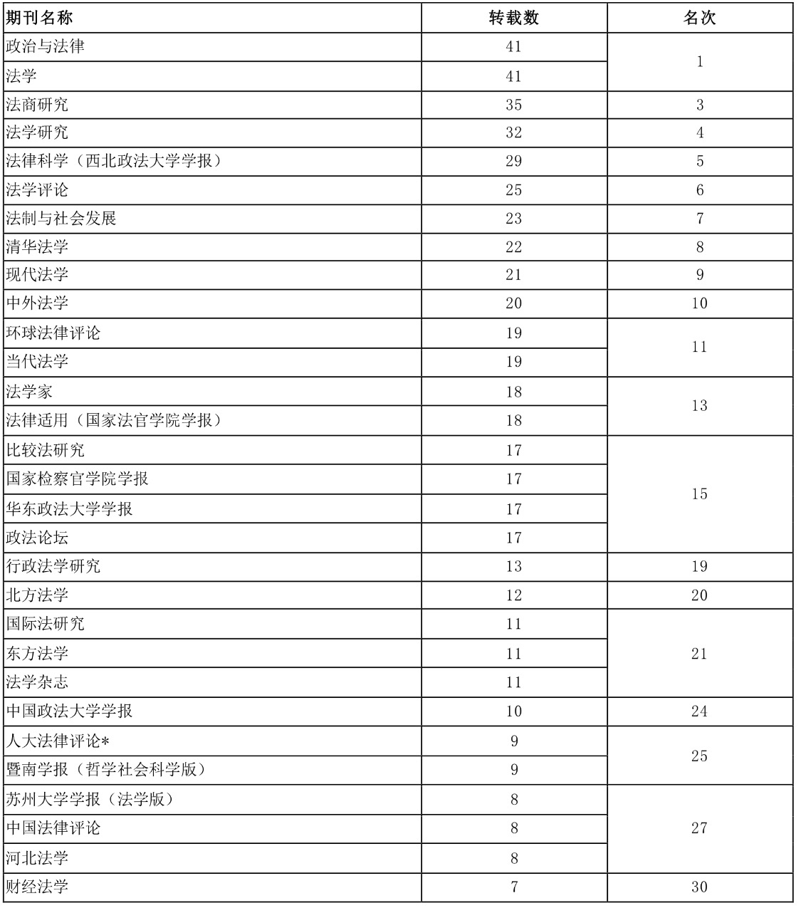 日前,由中國人民大學人文社會科學學術成果評價研究中心、書報資料中心研制的2017年度復印報刊資料轉載指數排名正式發(fā)布。此次“法學學科期刊排名”中涉及全文被轉載的期刊數量為181種,我校主辦的《財經法學》上榜,全文轉載量排名、全文轉載率排名,綜合指數排名都進入前30強,創(chuàng)歷史新高。其中,全文轉載量排名第30名,全文轉載率排名第26名,綜和指數排名第29名。這也是《財經法學》自2015年創(chuàng)刊以來連續(xù)第2次上榜。