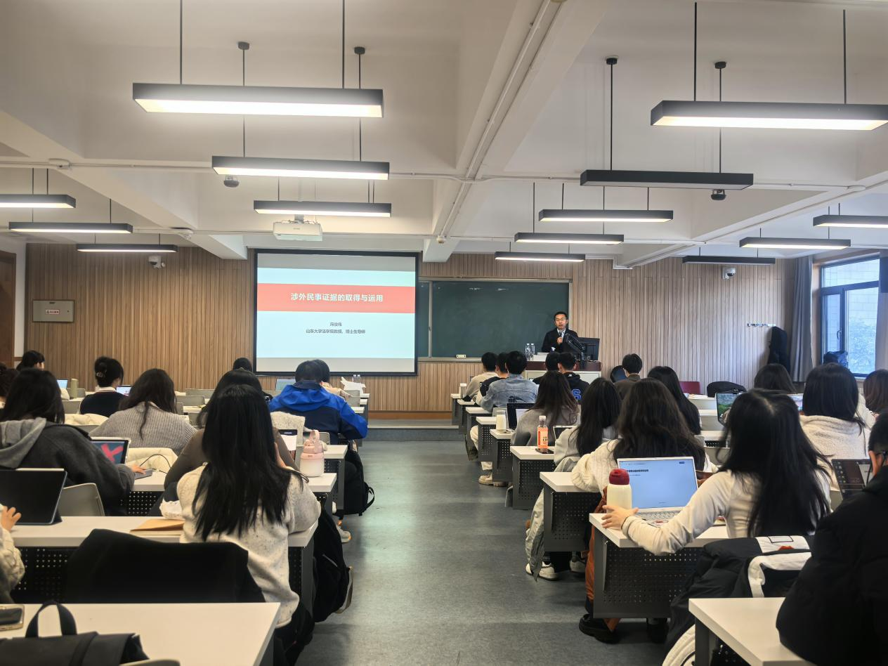 馮俊偉教授首先以當(dāng)前經(jīng)濟(jì)全球化與信息網(wǎng)絡(luò)技術(shù)發(fā)展的背景引出講座主題:在民事案件中,如何取得涉外民事證據(jù)以及如何對涉外民事證據(jù)進(jìn)行有效評價,對于促進(jìn)糾紛解決、保障民事司法公正都具有重要意義。其次,馮俊偉教授主要從涉外民事訴訟證據(jù)取得相較于刑事訴訟的差異視角,分析了涉外民事證據(jù)強(qiáng)調(diào)公證與認(rèn)證程序、重視證據(jù)的形成而非取得的特殊界定方式,并且深刻指出涉外民事證據(jù)在概念和邊界上不如刑事涉外證據(jù)清晰的原因之一,可能基于涉外民事訴訟定位在糾紛解決的制度功能。再次,馮俊偉教授指出涉外取證緩慢低效、不確定性大的難題,結(jié)合我國法、域外法、《海牙國際公約》等詳細(xì)介紹了司法協(xié)助、外交途徑、領(lǐng)事取證等主要方式,電子取證在未來涉外民事訴訟證據(jù)取得中將發(fā)揮重要作用。隨后,馮俊偉教授總結(jié)了關(guān)于涉外民事證據(jù)可采性的七大法律難題,并構(gòu)建有針對性的解決方案,建設(shè)性地提出“堅持四個基本立場”的觀點(diǎn)。最后,馮俊偉教授對涉外民事證據(jù)作出了整體評價,為未來涉外民事證據(jù)的發(fā)展方向提出了構(gòu)想,啟發(fā)同學(xué)們思考是否可能出現(xiàn)具有共同基礎(chǔ)的民事證據(jù)法、全球趨同的電子證據(jù)法、民事證據(jù)沖突法的國際規(guī)則。