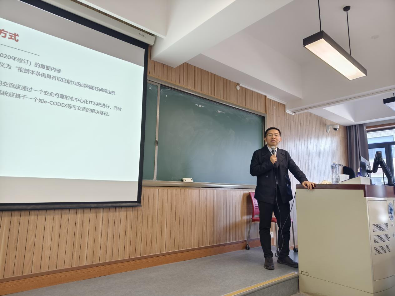 曹建軍副教授對本次講座作簡要總結(jié),感謝馮俊偉教授百忙之中蒞臨我校,講座主題對于民事訴訟法課堂而言具備極其重要的價值,馮俊偉教授對于學(xué)術(shù)前沿的把握和獨(dú)到新穎的觀點(diǎn)令同學(xué)們受益匪淺,為同學(xué)們對民事訴訟法的學(xué)習(xí)和研究提供了指引、開拓了思路。同時強(qiáng)調(diào),在當(dāng)今涉外法治建設(shè)如火如荼的當(dāng)下,學(xué)術(shù)研究應(yīng)當(dāng)抓住學(xué)術(shù)導(dǎo)向的風(fēng)口。我國民事訴訟法中雖然規(guī)定了涉外程序篇,但相對而言,學(xué)界對于涉外內(nèi)容和取證規(guī)則方面的研究仍有欠缺。借此契機(jī),曹建軍副教授也鼓勵同學(xué)們加強(qiáng)對涉外民事訴訟領(lǐng)域證據(jù)相關(guān)問題的研究,并從跨學(xué)科角度綜合思考。
