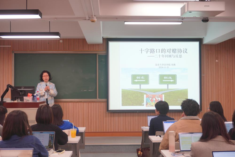 2024年11月21日晚,北京大學法學院教授、博士生導師劉燕教授為我校學生作了以“十字路口的對賭協(xié)議”為主題的講座。本次講座由中央財經(jīng)大學法學院講師李敏主持,法學院周游副教授、王湘淳副教授,中國政法大學民商經(jīng)濟法學院徐可老師,以及校外實務工作者、法學院各年級碩博研究生、本科生等110余名師生出席。本次講座為法學院建院20周年系列講座第6期,同時受到中央財經(jīng)大學“龍馬奮進·75周年校慶”專題學術講座資助計劃支持。