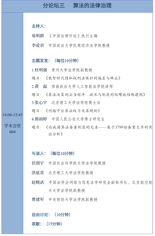 第三屆“數(shù)字法治青年論壇”分論壇議程