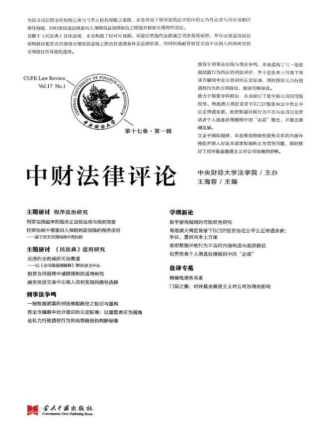圖2:《中財(cái)法律評論》第十七卷第一輯封面