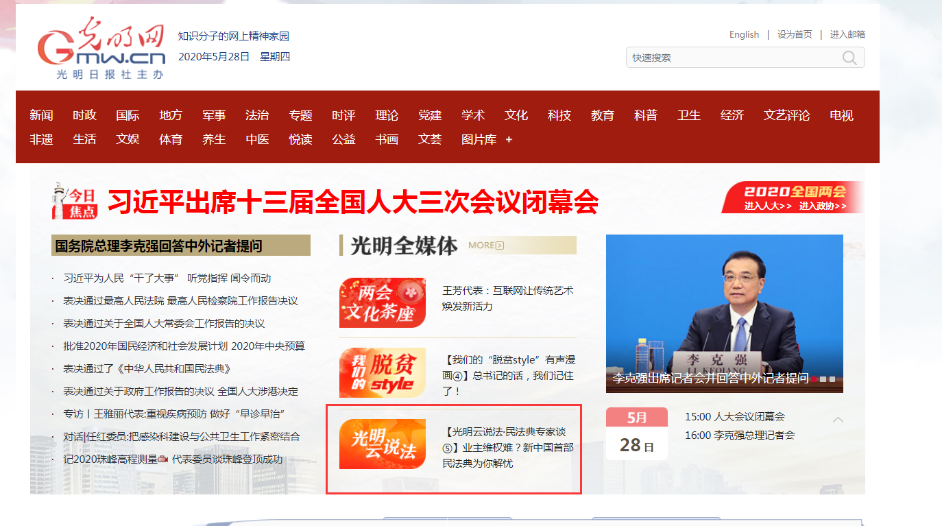 5月28日,十三屆全國人大三次會議表決通過了《中華人民共和國民法典》。這部法律自2021年1月1日起施行。