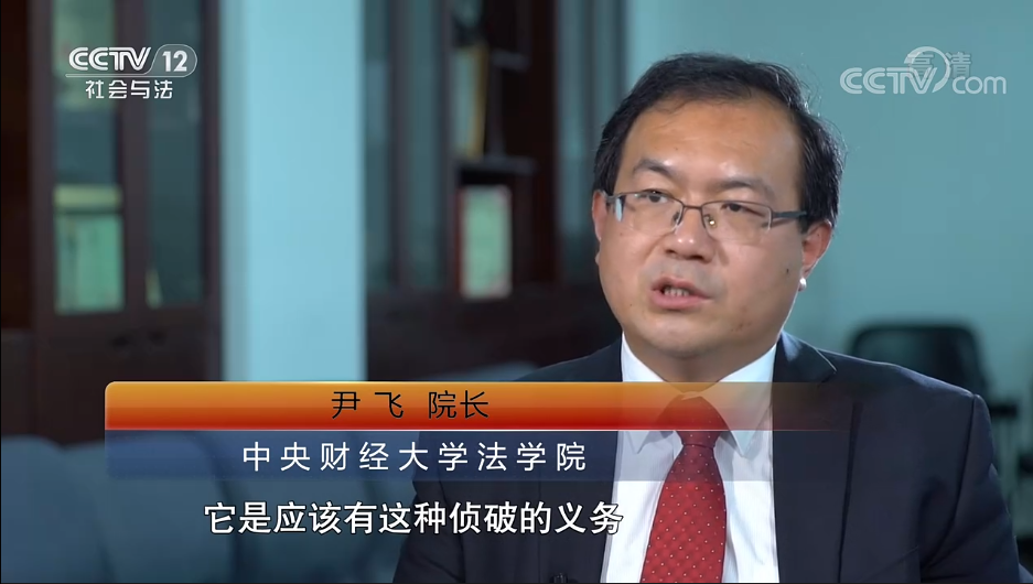 2020年5月28日下午,十三屆全國人大三次會議表決通過《中華人民共和國民法典》。當(dāng)晚,中央電視臺社會與法頻道(CCTV-12)播出《中國民法典誕生》一線特別節(jié)目。中央財經(jīng)大學(xué)法學(xué)院院長尹飛與三位全國人大代表、全國人大常委會法工委民法室相關(guān)負(fù)責(zé)人以及中國人民大學(xué)常務(wù)副校長王利明、清華大學(xué)法學(xué)院院長申衛(wèi)星等接受采訪。尹飛教授在訪談中就高空拋物、墜物,疫情防控等緊急狀態(tài)之下的國家訂貨、征用,民法典的制定意義等發(fā)表了自己的觀點。