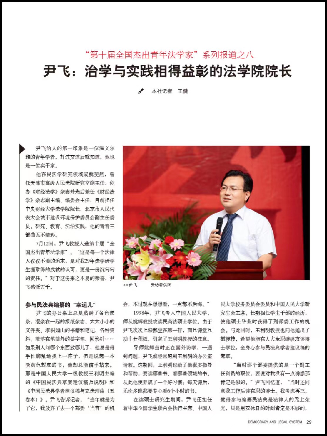 原標(biāo)題:“第十屆全國杰出青年法學(xué)家”系列報(bào)道之八|尹飛:治學(xué)與實(shí)踐相得益彰的法學(xué)院院長