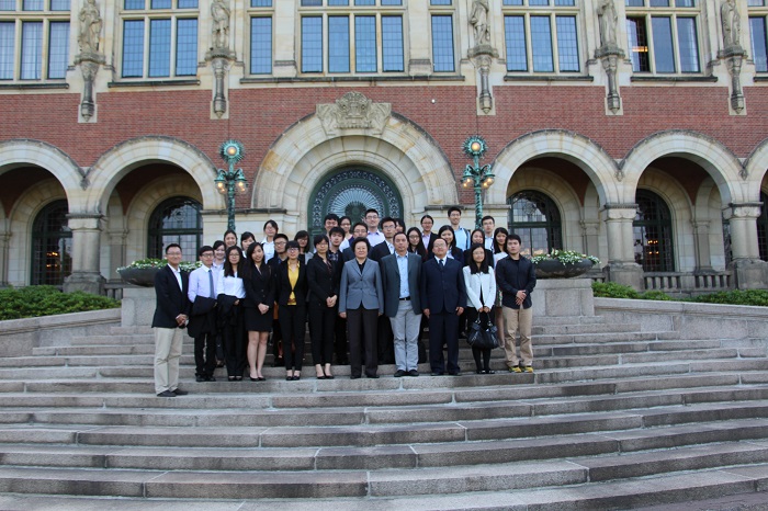 我校代表隊在2014國際刑事法院模擬法庭中文賽中取得了第四名的成績,并因此獲得國際刑事法院(International Criminal Court,下稱“ICC”)邀請,與復(fù)旦大學(xué)、北京大學(xué)、香港中文大學(xué)代表隊一起,遠赴世界和平之都荷蘭海牙,于2014年6月9-13日期間進行為期一周的交流學(xué)習(xí)。出訪團由李朝暉副教授帶隊,2013級法律碩士(法學(xué))專業(yè)黃巧婷、2013級刑法學(xué)碩士王鑫、2011級本科生李嘯東、許霏以及2012級本科生楊楠等五位同學(xué)組成。