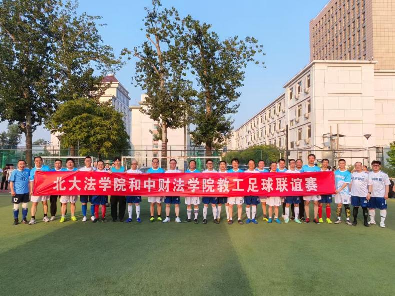 5 月 28 日下午,我院與北京大學法學院(以下簡稱“北大法學院”)教工足球聯(lián)誼賽在中央財經大學學院南路校區(qū)足球場順利舉行。此次活動由我院分工會組織,分工會文體委員董新義教授牽頭籌辦,旨在“以球會友”,以體育交流為紐帶,深化兩校法學教育同仁的友好情誼。