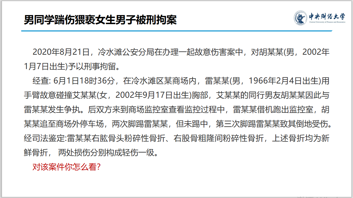 面試時(shí),選手們?cè)谧鞒龊?jiǎn)單的立場(chǎng)性陳述后,由簡(jiǎn)愛(ài)老師分為對(duì)立的兩組,接著就所給案例進(jìn)行申論,并對(duì)對(duì)方觀點(diǎn)針對(duì)性地進(jìn)行了反駁,這對(duì)選手法律知識(shí)的嚴(yán)謹(jǐn)掌握和臨場(chǎng)的語(yǔ)言應(yīng)對(duì)都提出了較高的要求,老師們也針對(duì)選手各自的表現(xiàn)進(jìn)行了切中要義的點(diǎn)評(píng)和指導(dǎo)。徐建剛老師指出,離婚冷靜期更多是在協(xié)議離婚的背景下進(jìn)行討論,而非許多同學(xué)在舉例時(shí)提到的家暴虐待等可以適用訴訟離婚的情形。劉泊寧老師從實(shí)踐角度出發(fā),引導(dǎo)學(xué)生探討了法庭上誰(shuí)對(duì)證據(jù)真實(shí)性和合法性負(fù)有舉證責(zé)任,公安機(jī)關(guān)是否有義務(wù)在偵查階段排除非法證據(jù)以及偵查機(jī)關(guān)落實(shí)該責(zé)任的困境。簡(jiǎn)愛(ài)老師在案例討論中也提出了諸多啟發(fā)性問(wèn)題,在踹傷猥褻者一案中,兩名選手都提到了男同學(xué)的行為可以被定性為扭送,簡(jiǎn)愛(ài)老師繼續(xù)追問(wèn),發(fā)現(xiàn)實(shí)施猥褻的人意欲逃跑將其踹傷算不算突破扭送行為的邊界?公民行使扭送權(quán)時(shí)是否需要有更嚴(yán)格的要求?一場(chǎng)面試下來(lái),同學(xué)們都獲益良多。