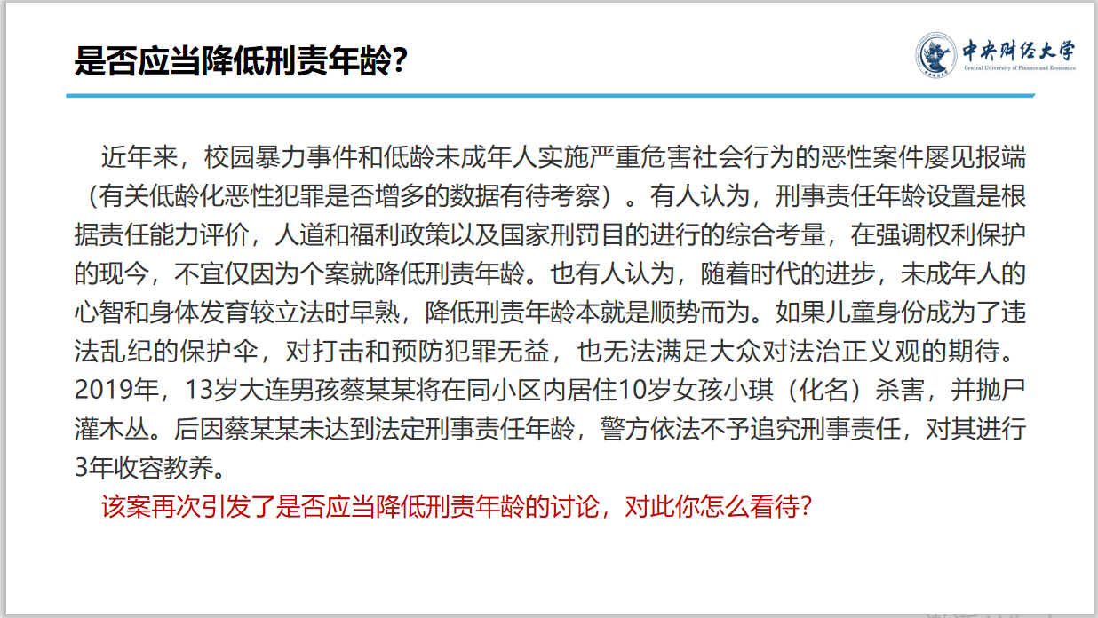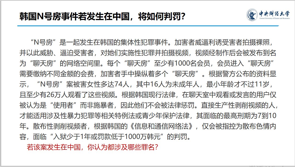 賽前,面試組經(jīng)過(guò)認(rèn)真篩選,決定將是否應(yīng)當(dāng)降低刑責(zé)年齡、韓國(guó)N號(hào)房事件、男同學(xué)踹傷猥褻者案等法律相關(guān)的的公共議題作為討論題目,并為選手們精心制作了題解。