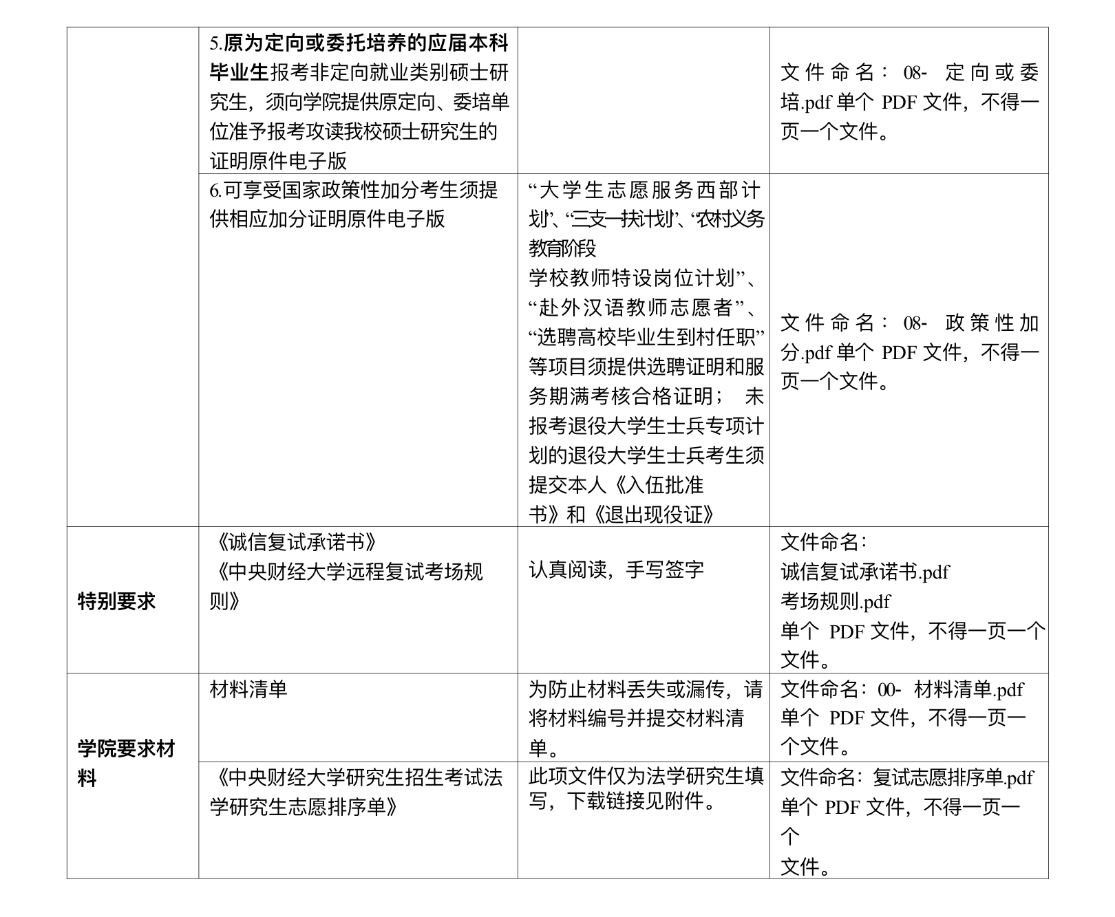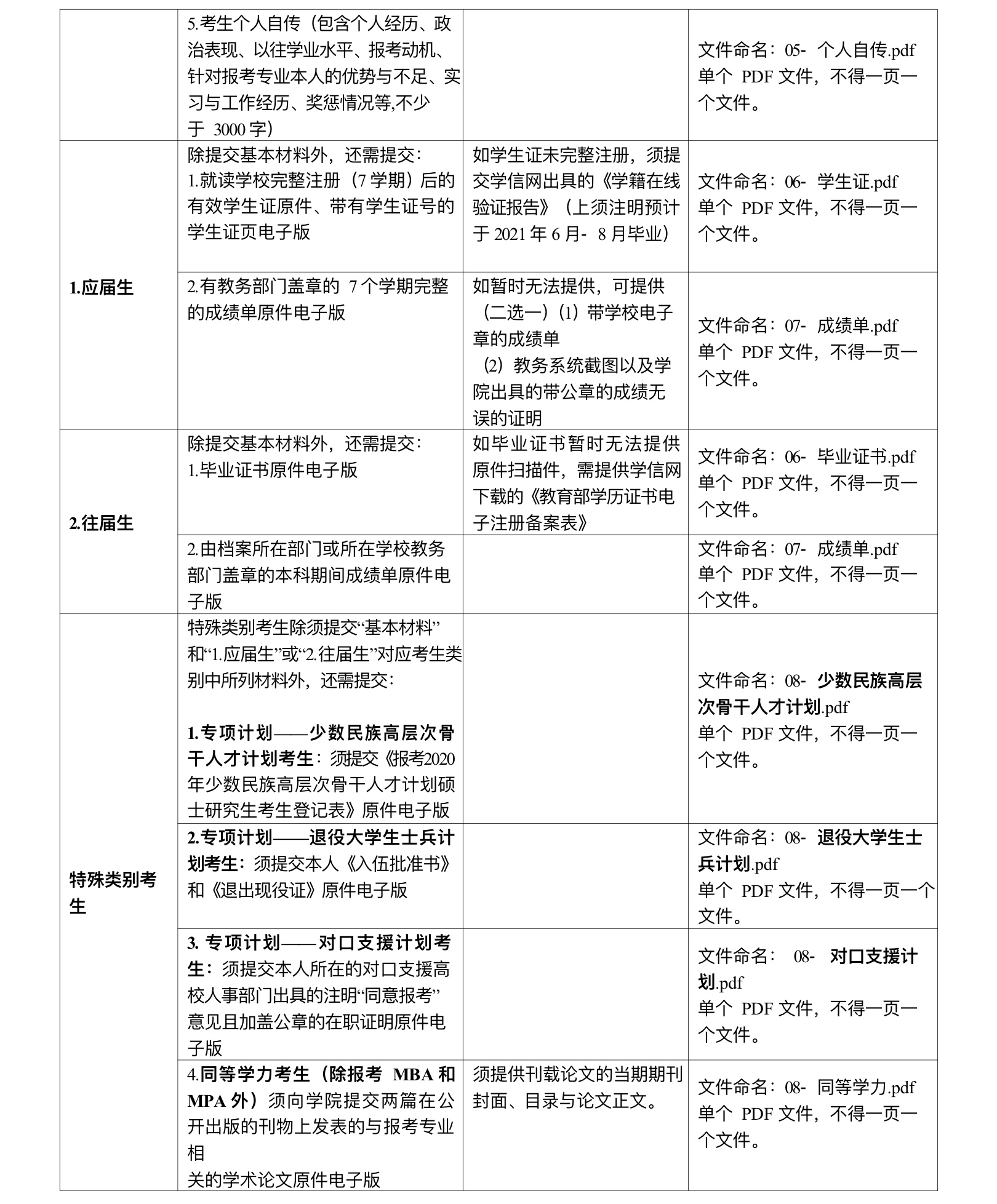 2.所有材料提供格式為PDF格式,單個材料大小不超過10Mb(兆)。各項材料,請務(wù)必按照下表中的要求進(jìn)行命名。