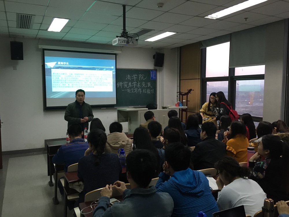 3月30日晚6點(diǎn)30分,由院研究生會舉辦的“論文寫作經(jīng)驗(yàn)談”學(xué)術(shù)交流活動在沙河校區(qū)主教501舉行。主講人分別為2013級法學(xué)博士研究生翟帥、2013級民商法學(xué)碩士研究生盧影、2013級法碩(非法學(xué))研究生劉冰心。他們分別獲得過法學(xué)會論文大賽、挑戰(zhàn)杯論文大賽等獎項(xiàng)。