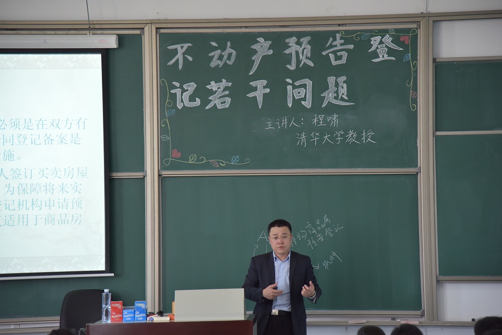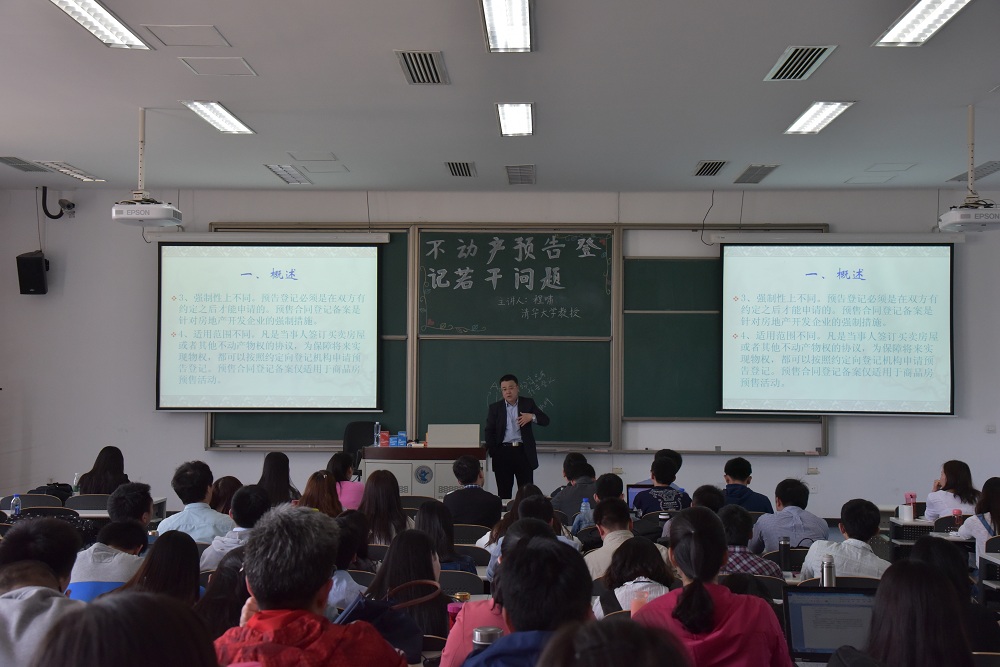 2016年4月20日下午,由法學(xué)院研究生會承辦的中央財(cái)經(jīng)大學(xué)第21屆研究生學(xué)術(shù)文化節(jié)“名家講壇”的講座在中央財(cái)經(jīng)大學(xué)沙河校區(qū)西區(qū)主教203教室舉行。此次講座邀請了國土資源部不動產(chǎn)登記專家委員會委員、北京市法學(xué)會不動產(chǎn)法研究會副會長、清華大學(xué)法學(xué)院博士生導(dǎo)師程嘯教授,為同學(xué)們帶來了一場主題為“不動產(chǎn)預(yù)告登記的若干問題”的講座。法學(xué)院院長助理李偉副教授、劉君博博士以及法學(xué)院各專業(yè)學(xué)生參加講座,院研究生會學(xué)術(shù)部李雨菡同學(xué)主持講座。
