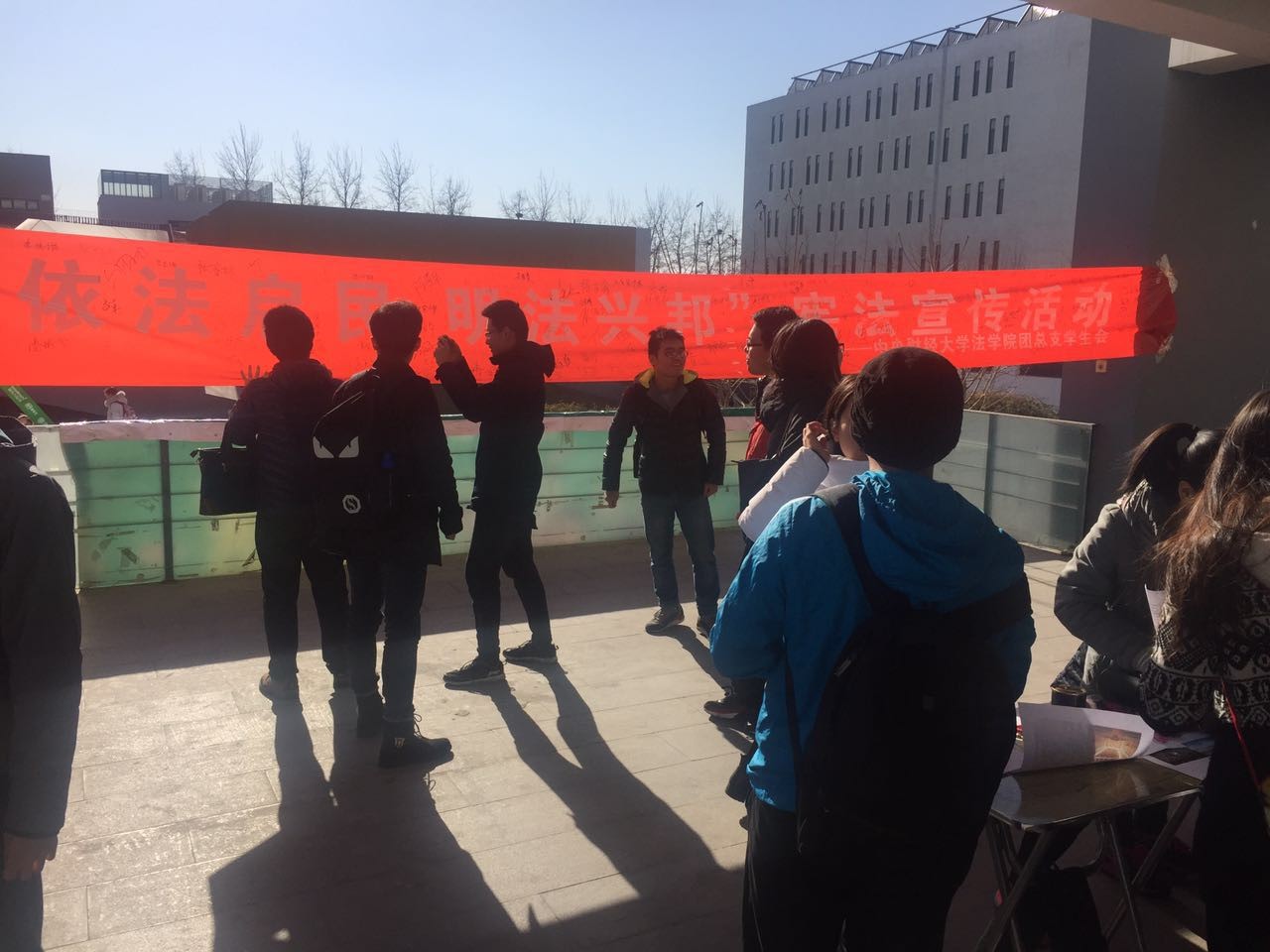 承接著12月4日憲法宣傳的熱潮,2016年12月5日由法學(xué)院研究生會(huì)和學(xué)生會(huì)共同舉辦了“依法啟民,明法興邦”憲法宣傳進(jìn)校園系列活動(dòng)。為了使更多的同學(xué)參與到此次的活動(dòng)中,活動(dòng)選在沙河校區(qū)人員活動(dòng)密集的餐廳展開。本次活動(dòng)主要是由法條記憶、趣味答題等一系列有關(guān)憲法知識(shí)的小游戲組成,希望通過有趣的游戲,吸引更多的同學(xué),加入到學(xué)習(xí)憲法知識(shí)的陣營中來。