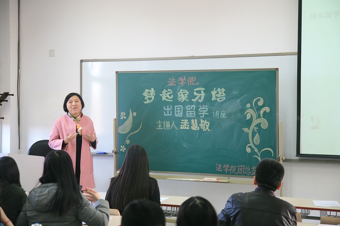 3月25日下午,我院“夢(mèng)起象牙塔”系列講座之出國(guó)留學(xué)專題在沙河校區(qū)東區(qū)學(xué)院樓2號(hào)樓306教室舉行,我校“圓你留學(xué)夢(mèng)”德育示范基地負(fù)責(zé)人、網(wǎng)絡(luò)教育學(xué)院的孟慧敏老師應(yīng)邀做了出國(guó)留學(xué)規(guī)劃交流。