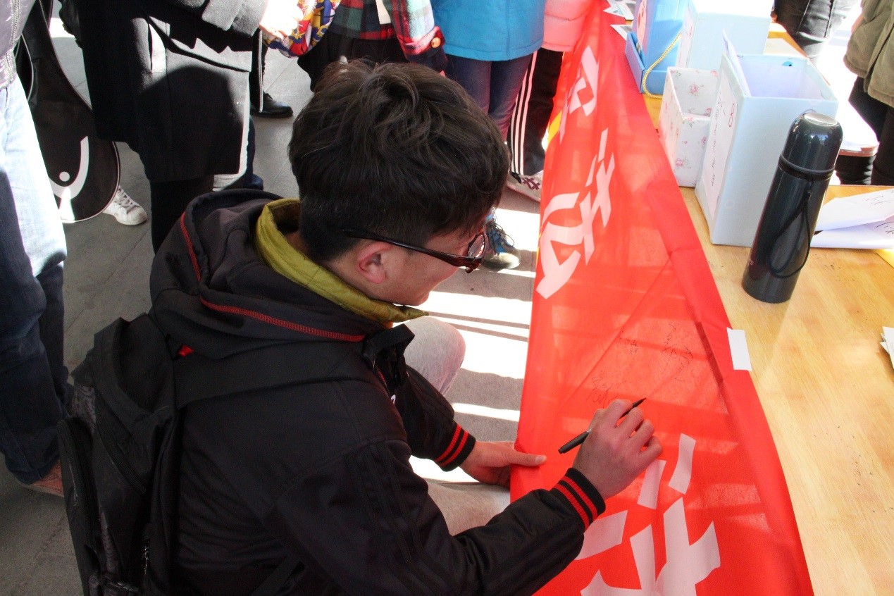 2015年12月4日中午12:00時(shí),由我校法學(xué)院團(tuán)總支學(xué)生會(huì)主辦的“行知憲法,法正民安”系列校內(nèi)宣傳活動(dòng)在沙河?xùn)|區(qū)食堂門口舉行。法學(xué)院的同學(xué)們懷著高漲的熱情和濃厚的興趣開展憲法宣傳,吸引了大批的中財(cái)學(xué)子也參與其中,以高校學(xué)子的獨(dú)特方式在交流與思考中慶祝我國(guó)第二個(gè)國(guó)家憲法日。