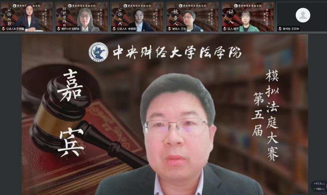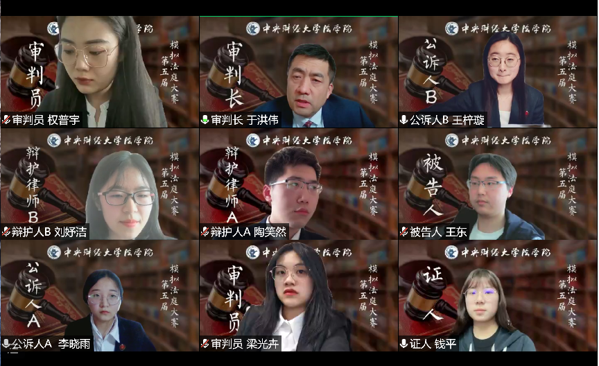 4月23日下午,第五屆模擬法庭大賽決賽于騰訊會(huì)議舉行。法學(xué)院副院長(zhǎng)李偉副教授出席,于洪偉老師擔(dān)任審判長(zhǎng),2018年北京市大學(xué)生模擬法庭大賽二等獎(jiǎng)暨最佳辯手梁光卉同學(xué)、2020年北京市大學(xué)生模擬法庭大賽二等獎(jiǎng)暨最佳辯手權(quán)普宇同學(xué)擔(dān)任審判員。2021級(jí)本科生陳婧茹同學(xué)主持,參賽隊(duì)伍代表,2020級(jí)、2021級(jí)本科生共計(jì)200余人到場(chǎng)觀摩。