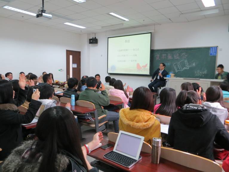 隨后,就進(jìn)入了本場(chǎng)座談的核心環(huán)節(jié)。主講人邢會(huì)強(qiáng)副教授主要介紹了三本推薦書(shū)籍,即陳志武的《金融的邏輯》、劉瑜的《民主的細(xì)節(jié)》和索羅斯的《超越金融》,并對(duì)每一本書(shū)都作了一些簡(jiǎn)要的點(diǎn)評(píng)。邢會(huì)強(qiáng)副教授說(shuō)道,學(xué)生看書(shū)之前要先學(xué)會(huì)選擇,要看有用之書(shū)、有價(jià)值之書(shū),并且在選書(shū)之前,要對(duì)書(shū)的作者有所了解,只有這樣,才能在書(shū)中學(xué)習(xí)到從未涉及過(guò)的廣闊的知識(shí)。