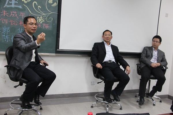 隨后,三位老師以互動的方式先后談了對李某某案的了解,郭華教授先后向陳驚天博士和李偉副教授提出諸如“什么是好人,誰是好人,誰是受害者”等等問題,將同學(xué)們的興趣深深地吸引到了他的話題里面,三位老師用生動的語言、真實的案例從不同角度回答了這些問題,給同學(xué)們從不同角度理解法律問題帶來了獨到的見解,并再一次把現(xiàn)場氣氛推向高潮。