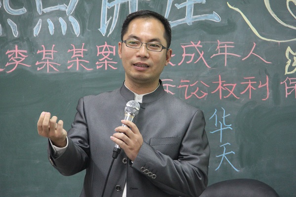 本次講座主要針對時事熱點特別是李某某案分析了未成年人的訴訟權(quán)利保障問題,旨在培養(yǎng)同學(xué)們對法律的更深的理解。陳驚天博士結(jié)合自己多年的刑事辯護(hù)經(jīng)驗,以李某某案、薄熙來案向大家講述了他在實戰(zhàn)中摸索出的刑事辯護(hù)戰(zhàn)術(shù)要領(lǐng)——備、知、攻、襲、變、勢,他講述到成為一名成功的刑事辯護(hù)律師需要有扎實的基礎(chǔ)知識、勇于承擔(dān)責(zé)任、良好的溝通能力以及有豐富的閱歷;同時,他給同學(xué)們講述了他的第一次辯護(hù)經(jīng)歷;講述了刑事辯護(hù)方面的戰(zhàn)略策劃等等。
