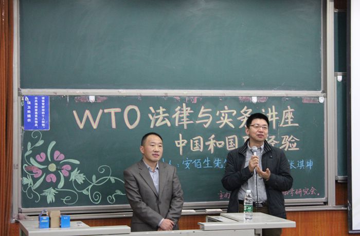 10月28日晚6點(diǎn)30分,由我院法學(xué)研究會(huì)承辦的以“中國(guó)和國(guó)際經(jīng)驗(yàn)”為主題的WTO法律與實(shí)務(wù)講座在沙河校區(qū)7號(hào)樓115教室舉行。本次講座邀請(qǐng)了中國(guó)商務(wù)部世界貿(mào)易組織司的安佰生處長(zhǎng),我院行政負(fù)責(zé)人吳韜副院長(zhǎng)、張旗坤副教授出席了本次講座。