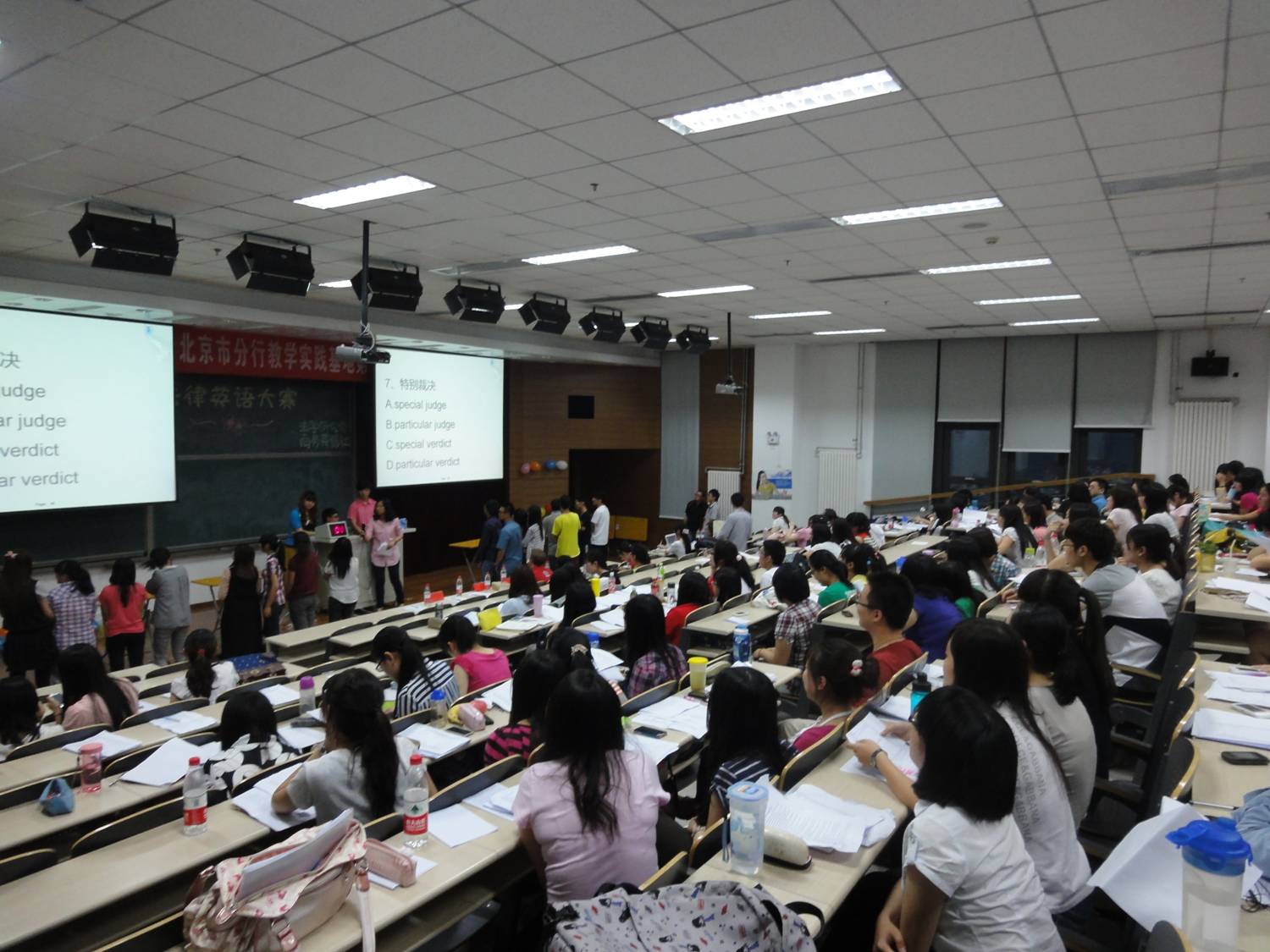5月18日晚,法學(xué)研究會(huì)和商務(wù)英語社在沙河校區(qū)主教111教室聯(lián)合舉辦了法律英語大賽。本次大賽特邀清華大學(xué)法學(xué)博士歷詠、中央財(cái)經(jīng)大學(xué)外籍講師Martin以及哈佛大學(xué)學(xué)士、耶魯大學(xué)法律博士Ting Wang擔(dān)任評(píng)委老師,以4人自由組隊(duì)的方式報(bào)名參賽,實(shí)時(shí)到場(chǎng)參賽隊(duì)伍多達(dá)34支。