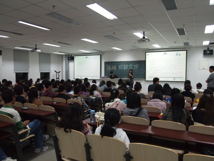 10月12日晚,法學研究會一年一度的招新推介會在學院樓6號樓106教室如期舉行。法研社社長龍海莎,副社長尹奇、洪曉東,前任社長齊倩,各部部長,眾多法研社員及11級法學院新生參加了此次招新推介會。