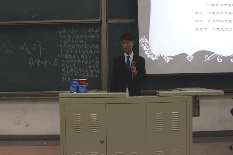 2017年4月7日晚6時30分,由共青團中國政法大學委員會、北京市學生聯(lián)合會、中國政法大學社團聯(lián)合會主辦,中國政法大學準律師協(xié)會承辦、中央財經(jīng)大學法學研究會協(xié)辦,競天公誠律師事務所支持的北京市級法學實務技能競賽——“競天公誠杯”第十四屆北京市準律師大賽中財校區(qū)初賽在沙河校區(qū)主教110教室準時拉開帷幕。中央財經(jīng)大學和外交學院的參賽選手在中財沙河校區(qū)參加比賽。