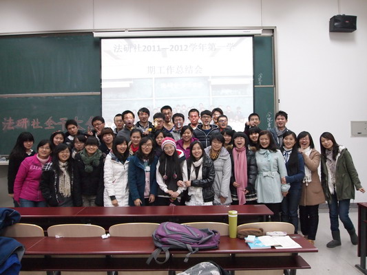 12月7日晚,法學(xué)研究會學(xué)期總結(jié)大會在主教212舉行。臨近歲末的這次大會旨在回顧2011年法學(xué)研究會取得的每一個成果,展望2012年將要迎來的每一個挑戰(zhàn)。會長龍海莎同學(xué),社團各部門部長及干事參與本次會議。