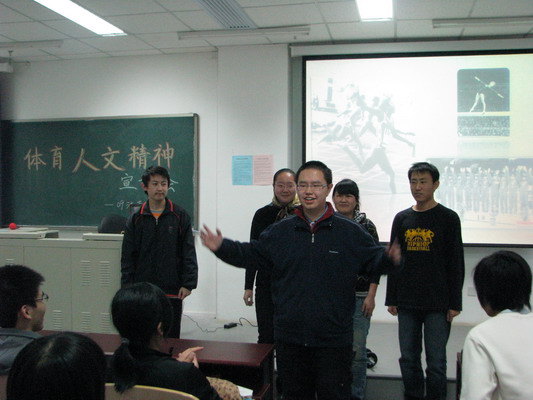活動(dòng)在反映古今中外體育人文精神的一系列小短劇中拉開序幕,隨后應(yīng)邀參加宣講會(huì)的三位嘉賓分別暢談了他們的“運(yùn)動(dòng)人生”。來自我校09級(jí)體育與經(jīng)濟(jì)管理學(xué)院3班的李莉同學(xué)曾是全國女子摔跤冠軍賽的亞軍得主,她講述了自己在運(yùn)動(dòng)生涯中的坎坷的經(jīng)歷,尤其是如何克服困難、獲得成功的經(jīng)驗(yàn);我校羽毛球協(xié)會(huì)會(huì)長尹路同學(xué)講述了一些關(guān)于羽毛球比賽的知識(shí),包括羽毛球的規(guī)則、球拍的選擇、羽毛球比賽的精神與道德,他還結(jié)合親身經(jīng)歷講解了臨場(chǎng)心態(tài)與比賽心態(tài),贏得在場(chǎng)同學(xué)們的陣陣掌聲;我院09級(jí)2班的徐昌舉同學(xué)則以豐富的照片講述了騎自行車的好處、自行車旅行的益處以及各種自行車的裝備知識(shí)。最后王怡然同學(xué)帶領(lǐng)大家走進(jìn)了肚皮舞的世界,她先向同學(xué)們普及了一些關(guān)于肚皮舞的知識(shí),然后與另外4位同學(xué)一起帶來了肚皮舞表演,宣講會(huì)在張荷初同學(xué)深情的詩朗誦中落下帷幕。