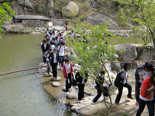 同學們抑制不住激動的心情,在前往目的地的巴士上就開始放聲歌唱,歡笑聲灑滿了春光明媚的清晨。到達目的地后,同學們將充滿活力的合影留在青山綠水間后便開始攀爬青龍山,沿途路過鯨魚出海、悟空受戒、金蟬望佛、玉洞仙游、飛天巨石、饅頭石、望天吼等等或險象環(huán)生,或層巖疊翠的美不勝收的山景。山路難行處,本班男生自覺伸出手來將女生安全護送上去,盡顯同窗情誼。到達一處山頂后,同學們俯瞰著腳下的阡陌縱橫與渺小的蕓蕓眾生,不禁生發(fā)出山高人為峰的奮斗欲和天地一沙鷗的渺小之感,紛紛為高處的風景所震撼,爬山的勞累也一掃而空。而后,同學們選了一處較為平坦的山石,紛紛圍坐在地上將自己帶的食物展示出來進行分享,美餐過后又自覺將包裝袋和果皮等收好帶下山去。下山途中巧遇一場微雨,更為這次爬山之旅增添一絲趣味。雨過天晴后,一部分體力好的同學繼續(xù)出發(fā)去征服白虎山,另一部分同學則留在山下玩起了游戲,直到紅日西沉,大家才戀戀不舍地離開白虎澗。
