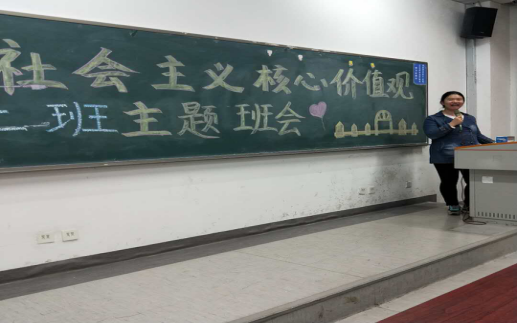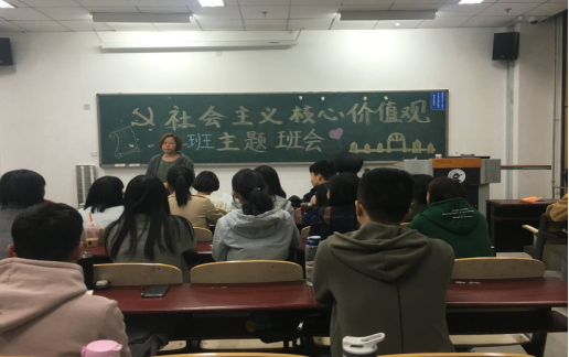 首先,潘琦老師簡單介紹了此次班會的主要內(nèi)容及意義,之后詳細介紹了社會主義核心價值觀的提出的時代背景、基本內(nèi)容等基本概念,讓同學(xué)們初步認識到社會主義核心價值觀。