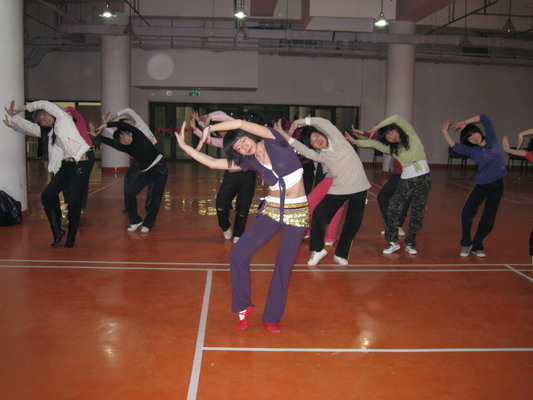4月20日晚,在我校“未央舞蹈社”肚皮舞教練王怡然同學的帶領下, 09法學1班全體女生在大學生活動中心橙色大廳集體學跳了肚皮舞。
