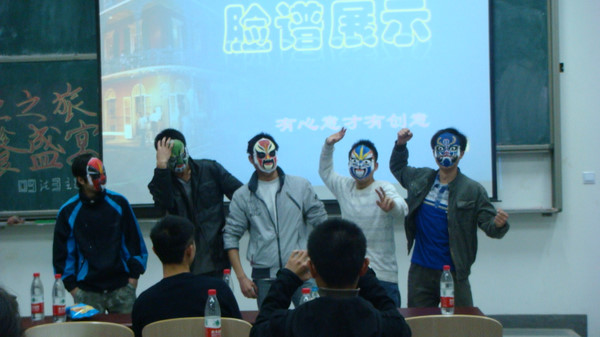 活動在團支書顏慧平同學播放了一段同學們前往中國戲曲學院學習京劇舞臺動作和畫臉譜的視頻后拉開序幕。在“知識競賽”環(huán)節(jié)中,通過對兼具趣味性和專業(yè)性的問題的搶答,同學們了解了許多有關京劇的知識。隨后,同學們戴上自己精心描繪的京劇臉譜上臺展示,中國戲曲學院的同學們則展示了他們的專業(yè)技能,唱念做打,精彩紛呈,贏得了滿堂喝彩。在互動環(huán)節(jié)中,幾位同學還上臺向戲曲學院的同學們學習了舞棍和唱腔。活動在熱情洋溢的氣氛中圓滿結束。