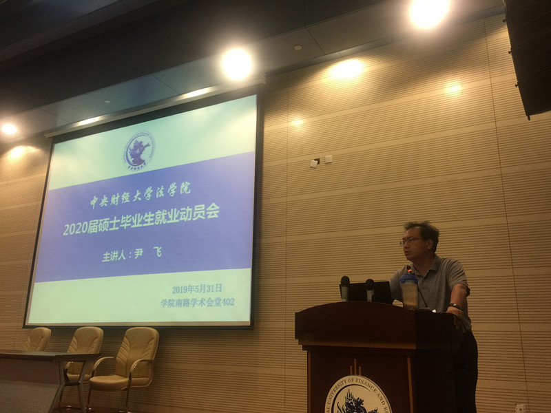 2019年5月31日晚,法學院在學術會堂402報告廳召開2020屆研究生畢業(yè)生畢業(yè)就業(yè)動員會。院長尹飛教授、副院長李偉副教授、院學工辦負責人尹力沉老師出席會議。全體2020屆研究生畢業(yè)生參加動員會。