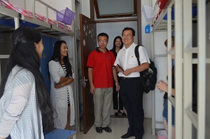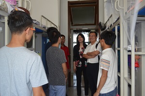 9月9日,我院院長尹飛、黨委副書記徐穎在出席學校新生開學典禮之后深入新生宿舍,親切看望2016級本科生和研究生。學院學生工作辦公室副主任吳文國、2016級本科生輔導員尹力沉陪同走訪。