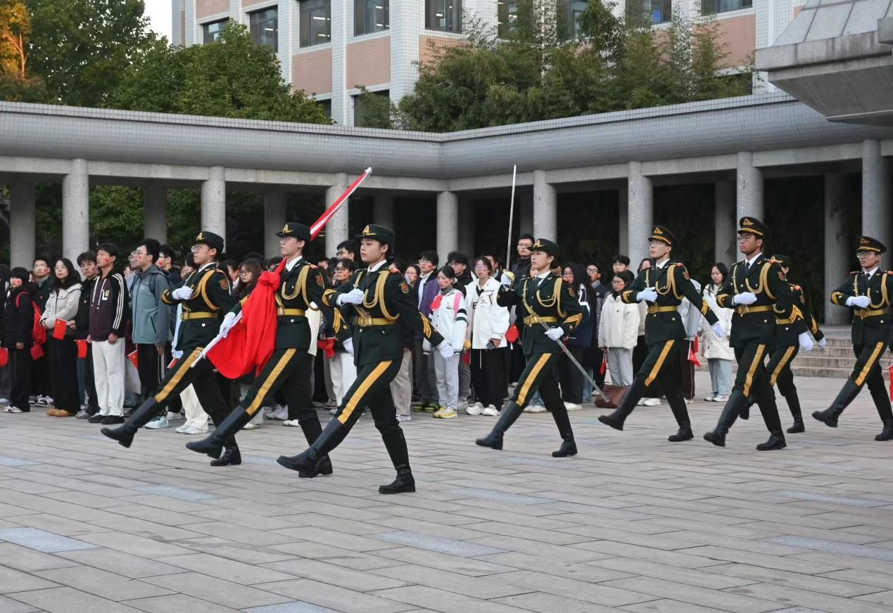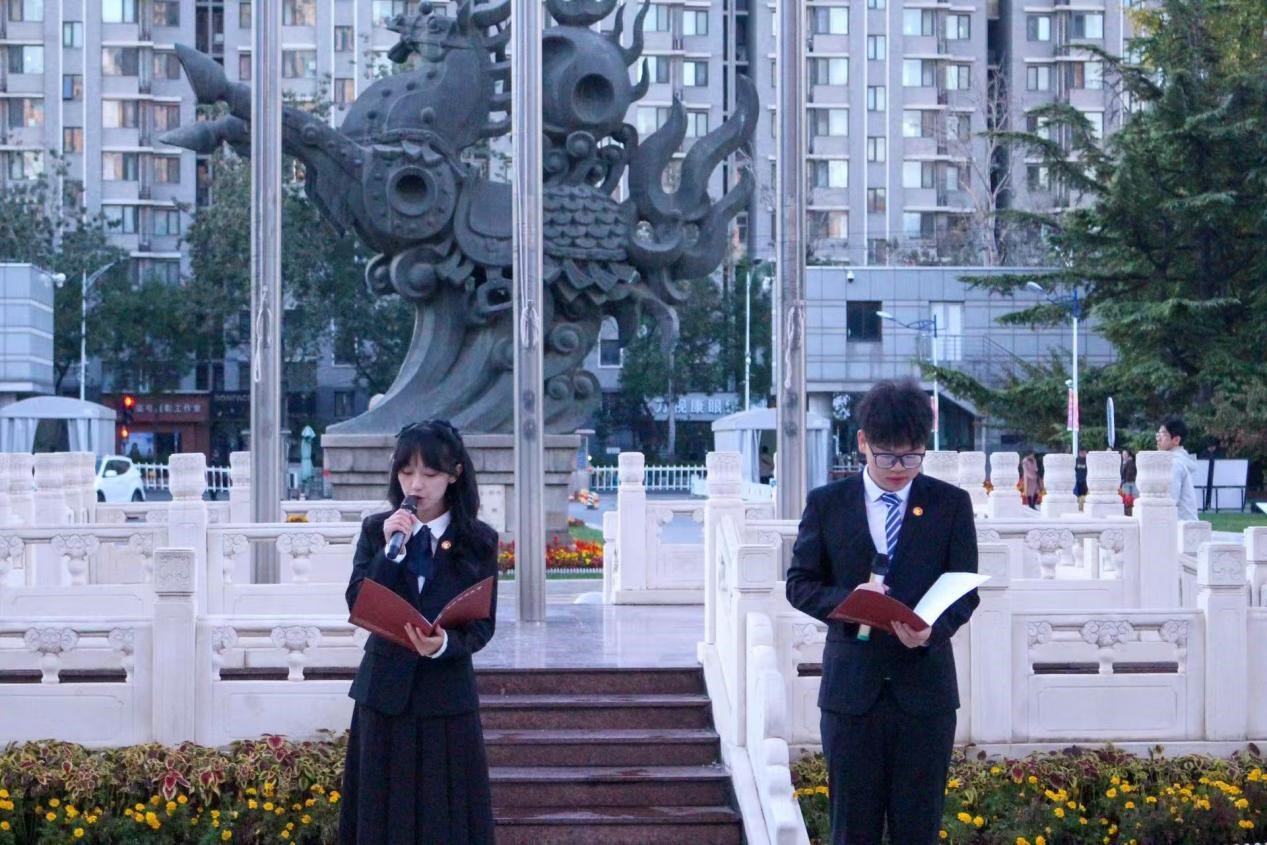 正值中華人民共和國(guó)成立、中央財(cái)經(jīng)大學(xué)建校75周年之際,為弘揚(yáng)愛(ài)國(guó)主義精神,加強(qiáng)對(duì)2024屆本科新生的思想教育,法學(xué)院和商學(xué)院積極響應(yīng)學(xué)院號(hào)召,于2024年10月28日上午7點(diǎn)組織舉行了“國(guó)旗下講話”主題教育活動(dòng)。該活動(dòng)為我院同學(xué)厚植愛(ài)國(guó)情懷、增強(qiáng)法治意識(shí)提供了寶貴機(jī)會(huì)。本次活動(dòng)主題為“我和祖國(guó)共成長(zhǎng),財(cái)經(jīng)報(bào)國(guó)勇?lián)?dāng)”,由法學(xué)院2024級(jí)本科生朱雯宇、商學(xué)院2024級(jí)本科生肖鑫主持,法學(xué)院2024級(jí)輔導(dǎo)員孫崔巍老師及全體本科生參加。