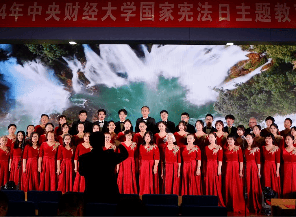 最后,中央財(cái)經(jīng)大學(xué)教職工合唱團(tuán)與法學(xué)院合唱團(tuán)共同演唱《我的祖國》,將本次活動(dòng)推向高潮,現(xiàn)場洋溢著師生們對(duì)祖國的熱愛和對(duì)憲法的尊崇。本次憲法日主題活動(dòng)在慷慨激昂的歌聲中圓滿落下帷幕。
