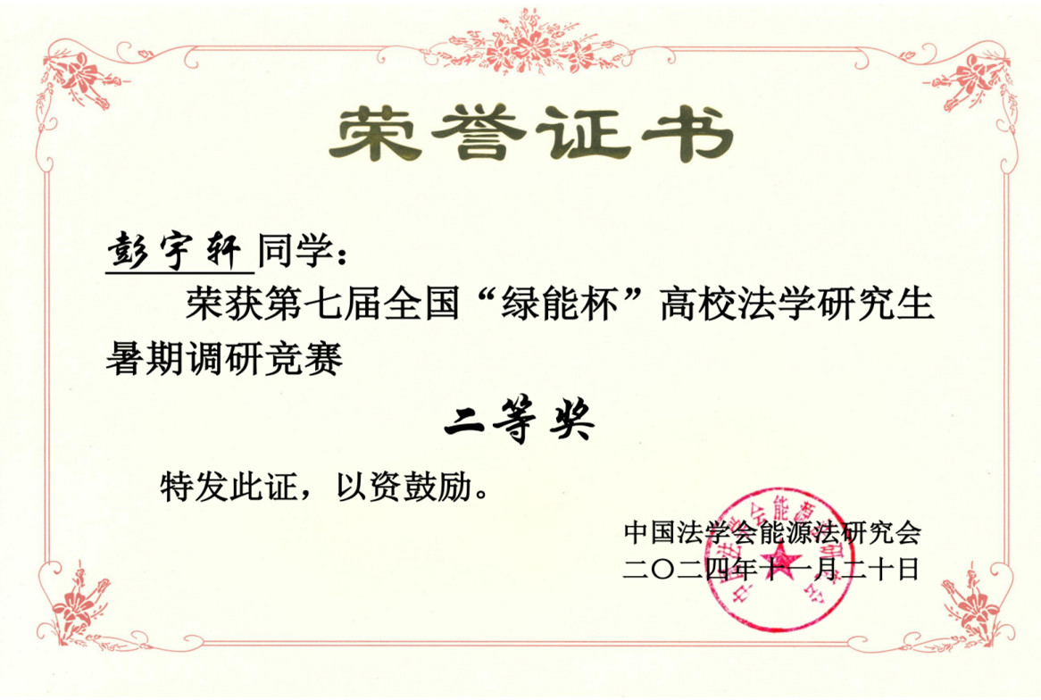 10月27日,由中國法學(xué)會能源法研究會主辦的第七屆全國“綠能杯”高校法學(xué)研究生暑期調(diào)研競賽答辯評審暨能源法實(shí)踐教學(xué)研討會在青島舉行。中央財(cái)經(jīng)大學(xué)法學(xué)院調(diào)研小組成員、法律碩士研究生彭宇軒同學(xué)撰寫的調(diào)研報(bào)告《“雙碳”目標(biāo)背景下我國生物柴油企業(yè)推廣政策研究》獲得二等獎,張小平副教授獲得優(yōu)秀指導(dǎo)教師獎。