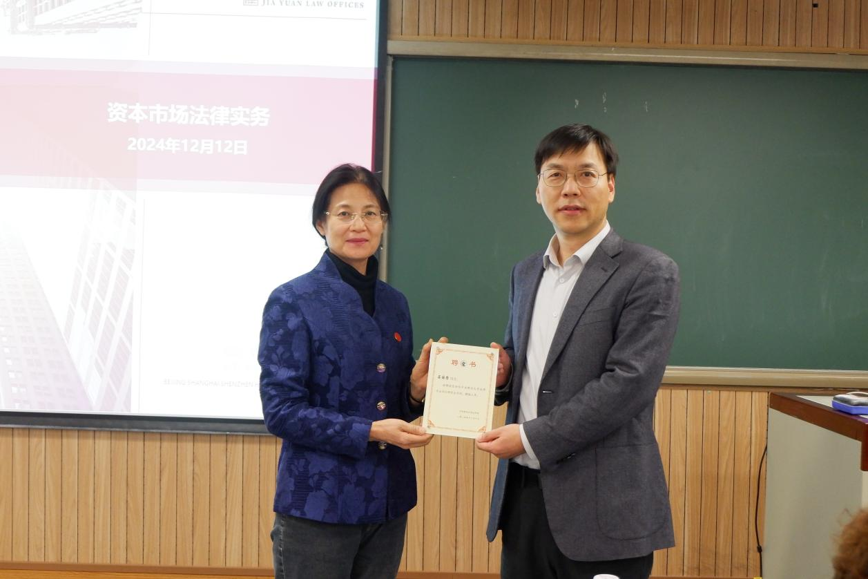 為了更好地發(fā)揮校友資源對人才培養(yǎng)助力,學(xué)院擬聘請晏國哲律師為中央財經(jīng)大學(xué)法律專業(yè)學(xué)位研究生導(dǎo)師。院黨委副書記徐穎老師為晏國哲律師頒發(fā)聘書。