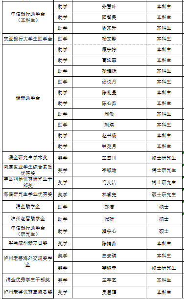 根據(jù)《關(guān)于開展2024年度學(xué)校社會(huì)性獎(jiǎng)助基金項(xiàng)目評(píng)審工作的通知》(校發(fā)〔2024〕292號(hào))要求,學(xué)院高度重視,廣泛動(dòng)員宣傳并啟動(dòng)2024年度校級(jí)社會(huì)性獎(jiǎng)助基金申報(bào)工作。經(jīng)個(gè)人申報(bào),學(xué)院評(píng)審小組嚴(yán)格審核把關(guān),學(xué)校評(píng)審、公示及審定等程序,我院邢惠君等46名本科生、王雪川等8名研究生獲得了“小米特等獎(jiǎng)學(xué)金”“涌金研究生學(xué)術(shù)獎(jiǎng)”等24類校級(jí)社會(huì)性獎(jiǎng)助基金,展現(xiàn)了我院學(xué)生勤奮學(xué)習(xí),砥礪奮進(jìn),勇于創(chuàng)新的態(tài)度與精神。
