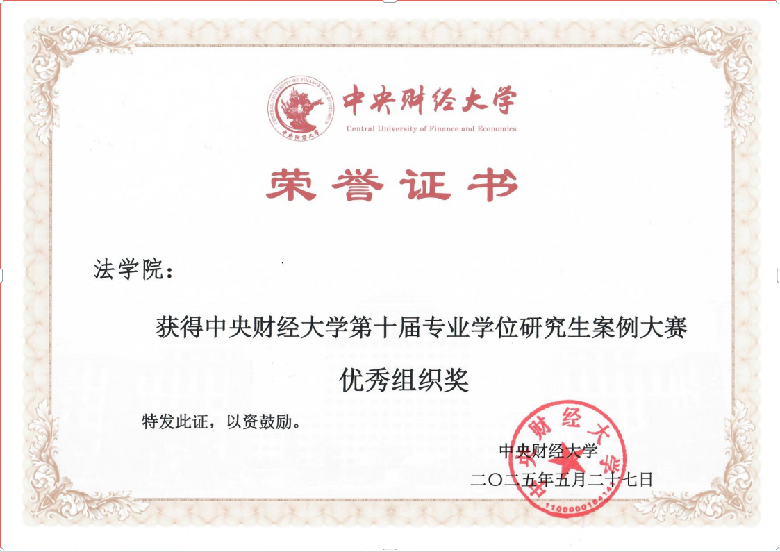 5月27日下午,第十屆中央財(cái)經(jīng)大學(xué)專業(yè)學(xué)位研究生案例大賽答辯會于學(xué)院南路校區(qū)主教114教室舉行。本次大賽經(jīng)過匿名評審及學(xué)術(shù)不端檢測等嚴(yán)格篩選,最終遴選出16篇案例進(jìn)入此次案例大賽答辯會。中央財(cái)經(jīng)大學(xué)法學(xué)院2支入圍團(tuán)隊(duì)在本屆大賽中勇創(chuàng)佳績,榮獲三等獎1項(xiàng)、優(yōu)秀獎1項(xiàng)。法學(xué)院獲優(yōu)秀組織獎。