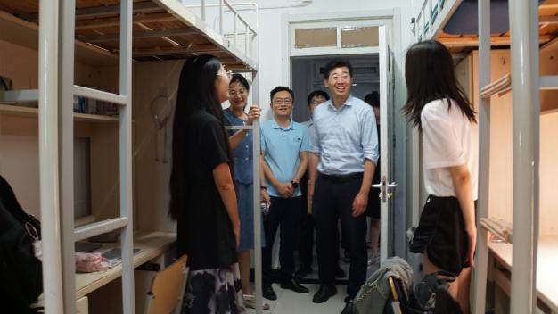 迎新現(xiàn)場工作結(jié)束后,副校長栗崢、法學院黨委書記于文豪、黨委副書記徐穎、副院長劉權(quán)、組織員陳誠等一同走訪了學生宿舍,熱情地關(guān)懷新生,傳遞了深切的關(guān)愛和慰問。