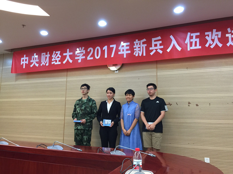 為了支持和鼓勵(lì)廣大青年在校大學(xué)生積極投身于我國(guó)偉大的國(guó)防建設(shè)事業(yè),9月11日上午,我院黨委書(shū)記吳韜、團(tuán)委書(shū)記尹力沉和三位學(xué)生代表受邀參加了2017年中央財(cái)經(jīng)大學(xué)新兵入伍歡送會(huì),為我院2016級(jí)本科生徐航同學(xué)以及經(jīng)濟(jì)學(xué)院唐爍、保險(xiǎn)學(xué)院劉南坤三位同學(xué)共同送行祝賀。