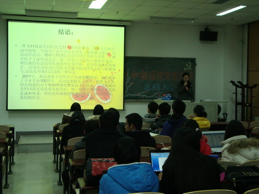 11月25日,法學(xué)院團總支在沙河校區(qū)主教209舉辦了2011年度主題教育總結(jié)會,會上,10級、11級各支部代表對10月開展的“學(xué)黨史、知黨情、跟黨走”活動的成果進行了展示。