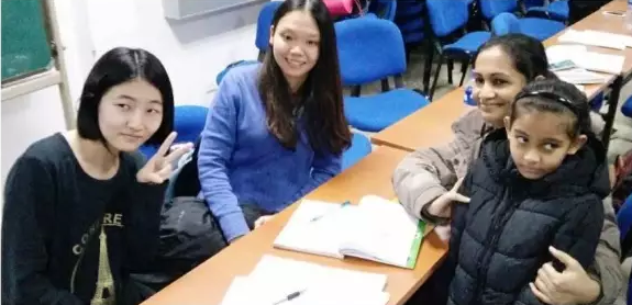 半小時之后,外國友人開始陸續(xù)到來,房間里變得愈發(fā)熱鬧,志愿者們紛紛上前與外國朋友們進行親切交流,然后找到教學的對象開始了忙碌而有趣的漢語教學活動。其中令志愿者印象最深的是一對外國情侶,男方的漢語水平相對而言已經(jīng)比較成熟,能流暢的與在座志愿者們進行簡單的漢語交流;而女方由于是初次接觸漢語教學,學習起來略顯吃力。于是她的男朋友主動過來輔導我們的志愿者開展教學工作,吃驚之余也讓在場的同學們感到十分的欽佩。