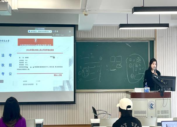 最后,二學(xué)位畢業(yè)生張琢琪同學(xué)進(jìn)行了就業(yè)經(jīng)驗(yàn)的分享,張同學(xué)從法考、秋招和考公三方面講解,介紹了各個(gè)考試的時(shí)間線以及學(xué)習(xí)筆記的記錄方法,強(qiáng)調(diào)了信息搜集和崗位選擇的重要性,介紹了筆面試內(nèi)容觸類旁通的技巧,并且解釋了秋招過程中“廣撒網(wǎng)”的重要性,在投遞過程中要學(xué)會(huì)利用“面試直通卡”,注意網(wǎng)申時(shí)間點(diǎn)。