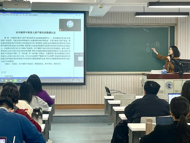 接著,簡愛老師也從法學(xué)學(xué)術(shù)方面闡釋了本科畢業(yè)論文的具體寫作方法。她指出,一篇好的本科生畢業(yè)論文應(yīng)當(dāng)重視內(nèi)容和格式兩個(gè)方面。在內(nèi)容方面,簡愛老師以一篇題為《論詐騙罪中被害人財(cái)產(chǎn)損失的數(shù)額認(rèn)定》的論文為例,向同學(xué)們詳實(shí)地講述了標(biāo)題、內(nèi)容摘要、標(biāo)題目錄、結(jié)構(gòu)論證的具體寫法;其中標(biāo)題應(yīng)當(dāng)較為簡短,摘要應(yīng)當(dāng)明確反映出整篇論文的觀點(diǎn),每級標(biāo)題下內(nèi)容的安排應(yīng)詳略得當(dāng)。在格式方面,簡愛老師強(qiáng)調(diào)了參考文獻(xiàn)和腳注引用的區(qū)別,直接引用和間接引用的區(qū)別,并且重申了腳注引用的格式以及數(shù)量要求,提醒各位同學(xué)在引用文獻(xiàn)時(shí)盡量不要選擇百科以及公眾號文章。她還強(qiáng)調(diào),論文的內(nèi)容需要針砭時(shí)弊,指出具體對策,絕不可以泛泛而談。
