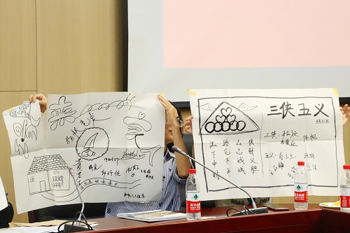 校友們在茶歇過后紛紛發(fā)言,表達(dá)了對學(xué)院和老師的感謝,分享了畢業(yè)后的個人發(fā)展情況。班長王志力向校友們展示了自己帶來的畢業(yè)照、班級活動的作品以及軍訓(xùn)時的照片等,喚起了校友們大學(xué)生活中溫馨快樂的回憶。