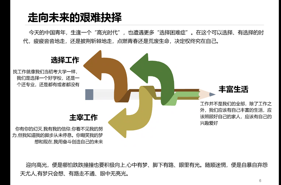 隨后,程芳校友圍繞“走向未來的艱難抉擇”,從選擇工作、主宰工作和豐富生活三個(gè)方面,總結(jié)了自己參加工作以來的寶貴經(jīng)驗(yàn)。關(guān)于選擇工作,程芳校友從身邊的例子著眼,重點(diǎn)強(qiáng)調(diào)了“務(wù)實(shí)”的重要性,鼓勵(lì)同學(xué)們珍惜時(shí)間,學(xué)會投資自己。關(guān)于主宰工作,程芳校友結(jié)合親身經(jīng)歷,分享了自己在努力投資自己、不斷追求夢想的經(jīng)歷,指出自己的成長和成就離不開奮斗,并以此激勵(lì)同學(xué)們要持續(xù)學(xué)習(xí)、永不懈怠。程芳校友還指出,工作并不是人生的全部,在工作之外,我們應(yīng)當(dāng)有自己豐富的生活,照顧好自己的家人,培養(yǎng)自己的興趣愛好。